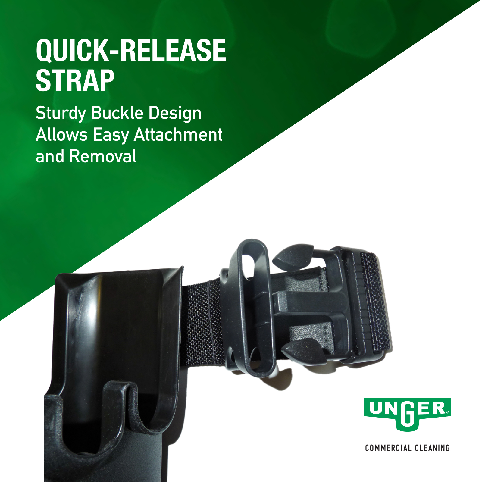 The Unger ErgoTec® Ninja Bucket On A Belt is a professional-grade tool holder designed for window cleaners who need their essential tools within easy reach. Made from durable, high-quality materials, this bucket is designed to hold up to two squeegees, one washer, one scraper, and approximately 0.75 liters of cleaning solution, this bucket ensures that you have everything you need right at your side. Constructed from durable plastic, it is built to withstand the rigors of daily use in various cleaning environments. The bucket features a sturdy quick-release strap, allowing for easy attachment and detachment from your belt, and is suitable for both right and left-handed users. Its compact design makes it ideal for use in confined spaces, on ladders, or when navigating through tight areas. By keeping your tools organized and within reach, the ErgoTec® Ninja Bucket On A Belt minimizes downtime and enhances efficiency, making it an indispensable accessory for any window cleaning professional.